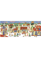 逛街囉!街上的景物,在風格獨特的畫筆下,一頁一頁帶出來,有街頭樂手、巡邏警察、電梯大廈、高樓教堂、直升機、腳踏車、紅綠燈、公車站牌、拿掃把的小老鼠……對照白天和夜晚的街景畫面中,孩子睜大眼睛,玩起視覺辨識遊戲,尋找埋藏當中的幽默巧思,原來,郵差騎腳踏車送信、公車站牌在教堂前、晚上警察抓小偷……找一找,還發現了什麼呢?