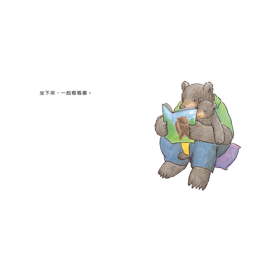 ★孩子最愛跟爸爸一起邊看這本書邊玩,玩啊玩的,突然就沒聲音了。原來是跟書裡的小熊一樣睡著了,而且父子睡著的姿勢也是一模一樣呢!——小宇媽媽(博客來讀者)