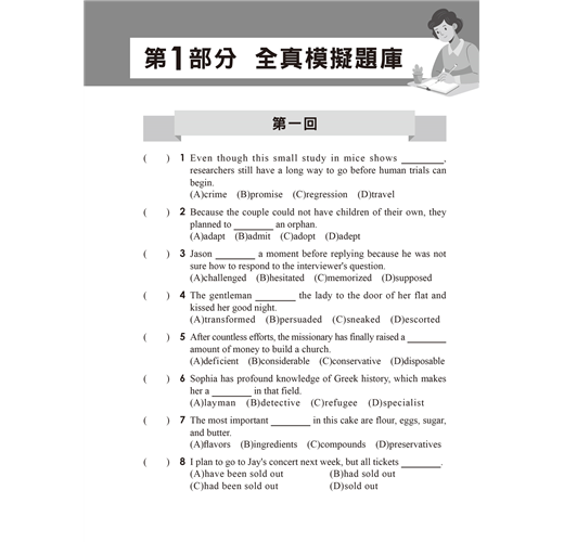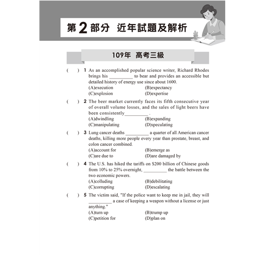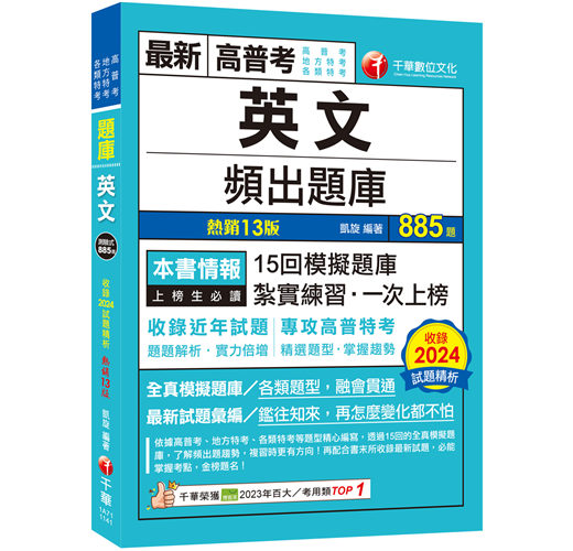 公職考試的英文科試題雖和托福較相似,天南地北無所不考,但從觀察歷屆試題中不難發現,考題中尤其是克漏字和閱讀測驗的出處多為英語的報章雜誌或學術期刊等,並非憑空造題。這意味著公職英文考試範圍雖然廣泛,但依稀仍有出題脈絡可循,像是這些報章雜誌等來源有一個共通點,便是會把焦點聚集在國際間重大新聞或議題,而本書編寫也是依循此一範圍,讓你能夠有一本專攻高普考、地方特考及司法特考的專門題庫,省去你苦苦尋找適用練習題庫的時間!