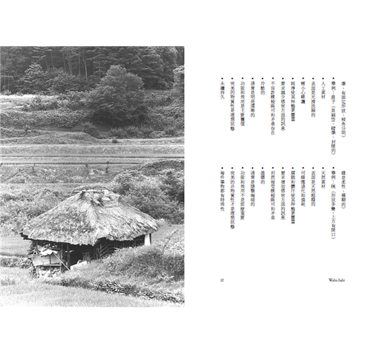 我一方面對日本文化進行研究,另一方面也發展自己的解讀,我努力融通兩者,試圖找出侘寂最根本的美學要件。我將這些看法去蕪存菁,簡化成精練的文字與詞彙,使其一同傳達出侘寂的核心本質。