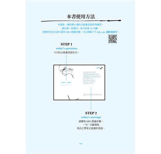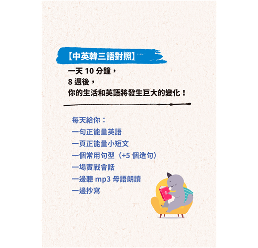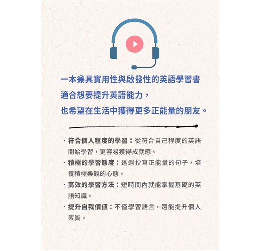 這是一本兼具實用性與啟發性的英語學習書籍,適合想要提升英語能力,也希望在生活中獲得更多正能量的朋友。