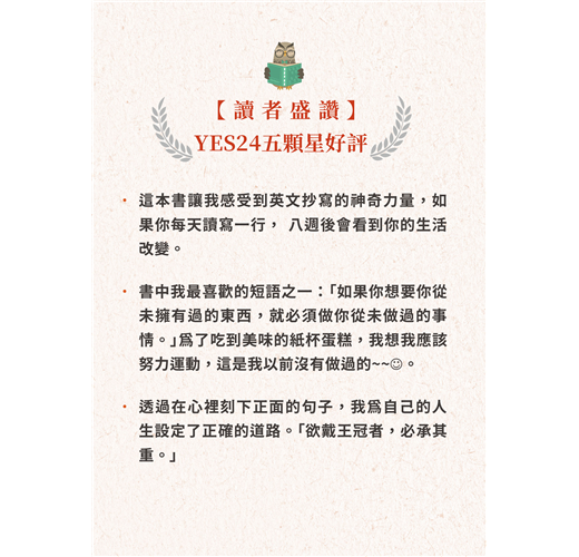 ˙這本書讓我感受到英文抄寫的神奇力量,如果你每天讀寫一行,8週後會看到你的生活改變。