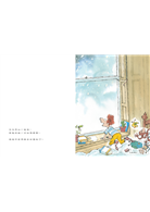 在爺爺宣布計畫後,他們就帶著可能會派上用場的東西,出發尋找完美的野餐地點。阿瑟用了一個大跨頁呈現他們準備帶出門的物品,在後續的故事中,不妨找找看究竟哪些東西真的發揮了功用,它們又在畫面上的哪些地方出現。而這裡也再度出現了兩人最後會遇見的對象提示(第一次在小男孩起床時): 位於右下方的海盜布偶。