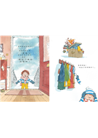 起先想要搶得第一個踏上雪地的機會,不停催促爺爺趕緊出門,但是小男孩其實也還沒準備完成到可以出門,因此在一來一回不斷補上遺漏物件的時間裡,讓小男孩錯過了第一個踏上雪地時機。