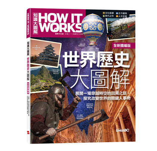 然而,欲逐一瞭解數千年之久的歷史談何容易?為此,《How It Works知識大圖解》的編輯群特別選定四大主題,從「文化探源」開始,一探早期人類的生活方式、宗教信仰直至社會活動;接著,「古今建物」將帶讀者盡覽眾多的偉大建築;在「時代之作」中,則可見識人類為了解決問題而打造的各式器物和機具;最後,「人文足跡」列舉出多位歷史名人和各行各業的工作者們,藉此一窺其不凡事蹟。