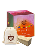 • 每套牌會附上一張獨特的透明卡片,可用於不同的光影呈現,依您心之所向來擺放使用。這張透明彩虹人,也可以對應身體脈輪部位,可依循直覺放置在每張光愛卡的上方。