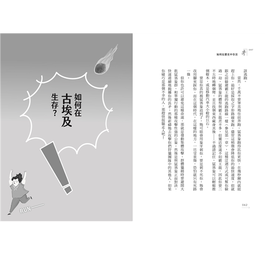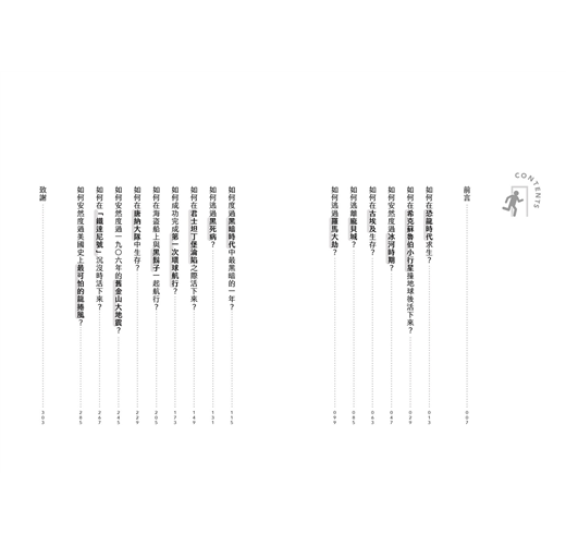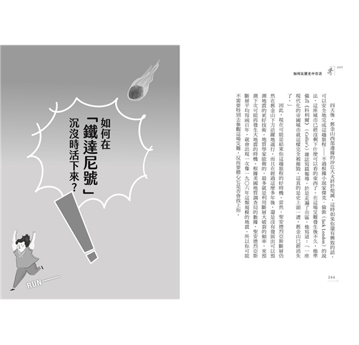 但不必擔心,只要帶上這本書,不管是恐龍的追殺還是隕石的撞擊,不管是火山突然爆發還是疫情張狂肆虐,就算生存的機率再小,你都能在驚心動魄的當下,知道要去哪裡、該做什麼,順利躲過一劫。