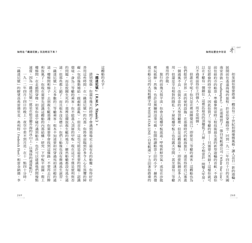 無論是不是災難片愛好者,我們都聽過行星撞擊地球、龐貝古城覆滅、鐵達尼號沉沒這些史上最危險的災難時刻。面對這些絕世浩劫,本書以專業而不失詼諧的筆法教你如何在大難臨頭時全身而退,誠摯推薦給熱愛時空冒險的你!