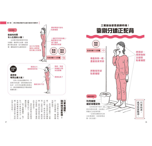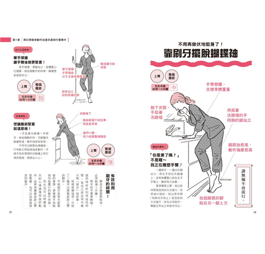 ◎無論是剛起床、做家事甚至開會中,皆能藉由各種動作雕塑身形、鍛鍊身體。