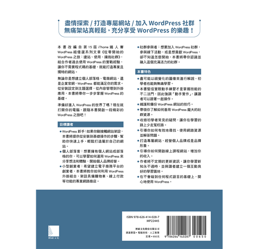 無論你是想建立個人部落格、電商網站,還是企業官網,WordPress 都能滿足你的需求。從安裝設定到主題選擇,從內容管理到外掛應用,本書將帶你一步步掌握 WordPress 的基礎。