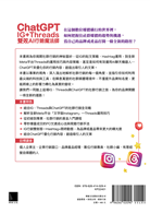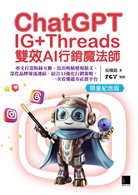 • ChatGPT~IG+Threads雙效AI行銷魔法師~:串文打造粉絲互動、寫出吸睛變現貼文、深化品牌導流連結、結合AI優化行銷策略,一次看懂超夯社群平台【限量紀念版】