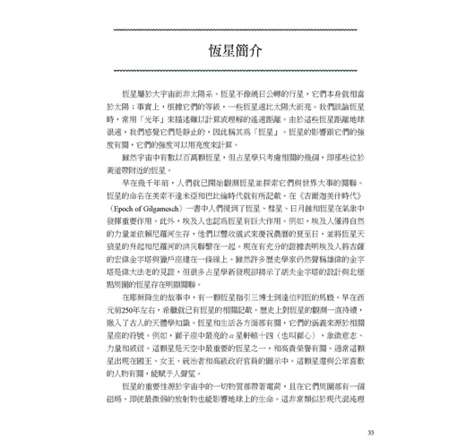 人類從早期開始,就已經意識到自然的力量和周期。這些自然周期和宇宙律動對每個生命有機體都有影響。尤其恆星雖然位於太陽系之外,卻一直影響著我們,而且 自古以來恆星就是占星學的一部分 。所以在這本書中,我們將介紹366天,恆星影響的現代涵義。