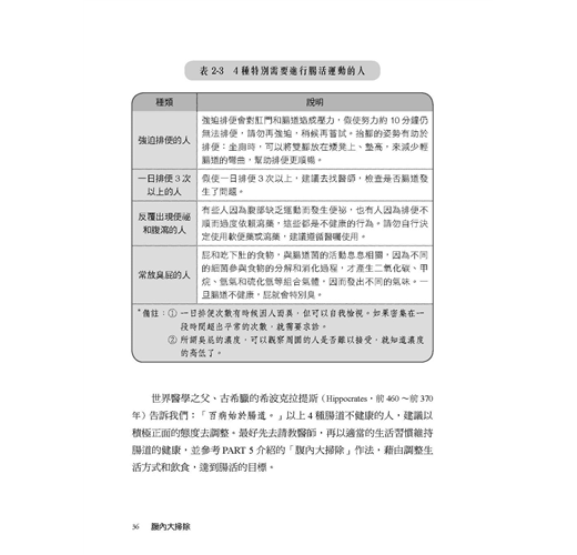 莊醫師從古代不同醫書中尋找佐證,發現各醫家有志一同的都強調:腸道健康的重要性!加上從小在母親教導與要求之下養成的生活習慣,同樣驗證了「每日排便」雖然是很小的一件事情,對身體健康來說卻是至關重要,因為不使食物殘渣在體內堆積,有轉為毒素、危害身體的機會,就是對健康最大的幫助。