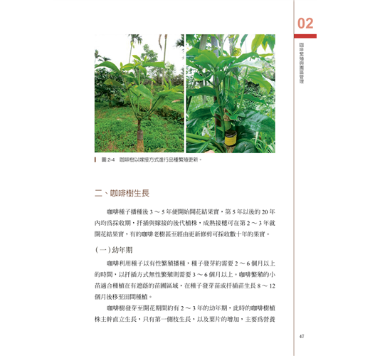 臺灣咖啡種植分布於中高海拔產區面積約占30%,中及低海拔產區各占35%,因國外引進咖啡在中低海拔地區之適應力不佳,如一般阿拉比卡咖啡品種在較低海拔的種植有表現不佳的情況,長期以來產量與品質較不穩定,因此農業試驗所致力於咖啡品種改良,並於2021年培育出本土咖啡品種「台農1號」,可適應各海拔區域的環境條件,並具有精品咖啡之品質。除此之外,本所對於咖啡栽培、肥培管理及病蟲害防治投入相當多的研究,穩定產量與品質,另面對人力短缺,致力發展田間自動化管理之機械應用,亦利用農業化學基礎解析咖啡採後處理及烘焙原理,以生物技術的角度剖析咖啡成分之萃取與風味。上述成果集結農業試驗所專家的研究精華,在本書均有深入淺出的說明,因此本書的內容兼具學理與實用性,希望能提供咖啡農民或對咖啡有興趣的民眾對臺灣咖啡產業樣貌更進一步的瞭解,進而支持讓日益進步的咖啡產業永續發展。