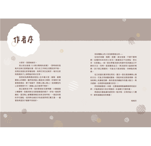 記錄育兒日常中那些讓我會心一笑的瑣事,讓大家看到孩子帶來的歡樂遠超過小小的挫折,並希望爸爸媽媽在育兒的路上找到屬於自己的幸福。