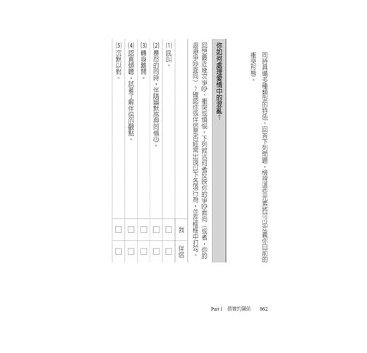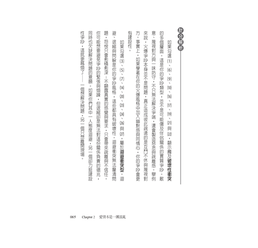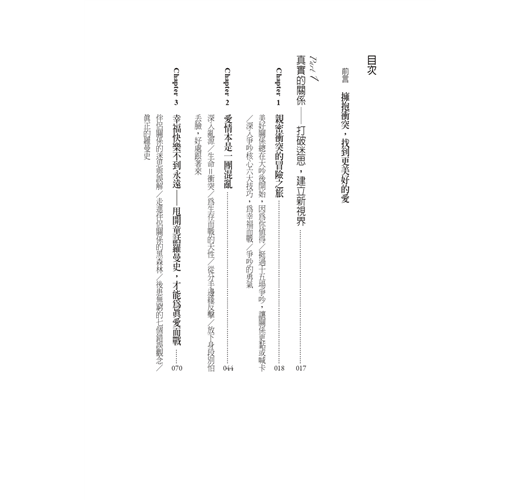 美好關係總在大吵後開始,因為你值得/挺過十五場爭吵,讓關係更黏或喊卡/深入爭吵核心六大技巧,為幸福而戰/爭吵的勇氣
