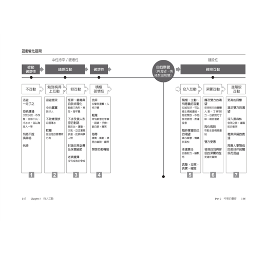 怎樣才算投入互動/從「太亂了」到「太棒了」/調整你的「關係天平」/創造性與破壞性的比例/互動變化區間:從破壞性持平到建設性創造/七大互動守則/守則❶ :強化正向互動。/守則❷ :將負向互動降至最低。/守則❸ :究責,對方最多只占五成。/守則❹ :對這段關係的快樂與滿足,負起百分百責任。/守則❺ :永遠都要說真話並接受真話。/守則❻ :爭取,而非搞對立。/守則❼ :善意推定。/配偶投入互動實錄/化學作用對了,活得更好,愛得更深