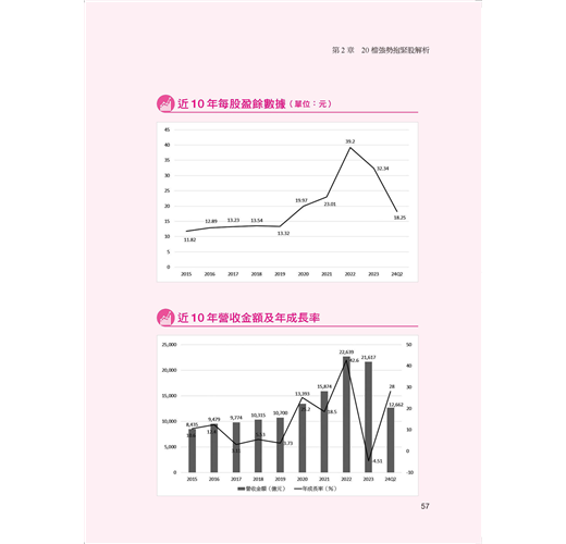 ․ 每股盈餘(Earning Per Share,簡稱EPS):代表公司在這一個季度中是否獲利,不過它只代表當季的獲利總和,還必須拆解其細部項目,才知道公司營運是否穩健。