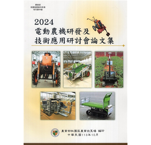 本論文集針對近年各學校及試驗改良場所研發電動農機,包含應用於整地、移植、除草、管理、收穫、搬運及電池管理等電動農機的研發與技術應用,並進行電動農機研發方向規劃及討論,特於113年4月26日(星期五)在桃園區農業改良場辦理「2024電動農機研發及技術應用研討會」