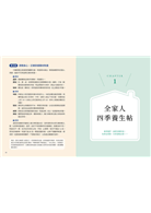 本書九個單元:全家人四季養生帖、全家人小病解救方、緊急時刻緩解法、肥胖調理瘦身術、銀髮族長壽養生經、兒童小病照護帖、女性專屬保健方、男性強健保養術、上班族放鬆身心帖。各族群應有盡有,解決每個人身體不適的煩惱。