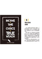 最後,我們會探討讓諸多「被動創業者」(passivepreneurs)達到目標的那些特定的生財資產,其中有很多可能會出乎你意料之外。我們不會著重在加班、時薪、工資、工作、薪酬這些事,而是轉向一些概念像是致富工具(wealth vehicles)、資產、被動收入、現金流,以及自由支配的時間等。