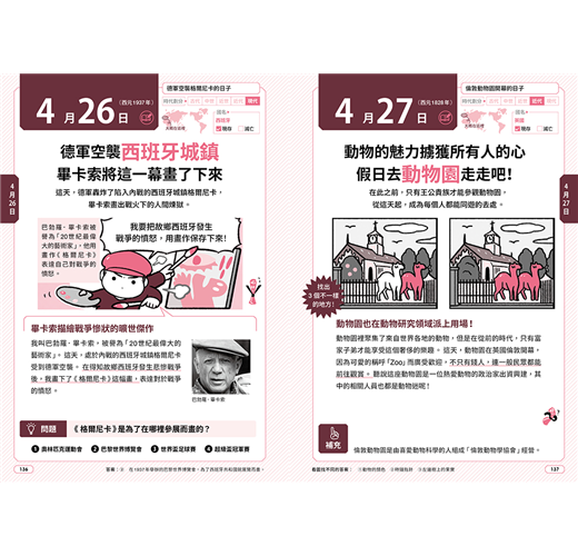 這本書實在太有趣了,每一頁就是一張日曆,也是一段歷史故事,一則漫畫,一個猜謎,一場令人難忘的嘉年華會...
