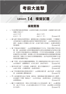 除了拼命死背題庫外,你有更好的選擇!千華數位文化所出版的《14堂人身保險業務員資格測驗課》全書系統化的區分課文重點,並將所有考試題目循序漸進的分作小試身手和實戰演練以及全範圍模擬試題,不僅讓你有階段性(由小到大)的目標複習,更有實務經驗的名師為你精心編錄大範圍仿真模擬試題,並針對較易混淆的難題加以解析,相信不僅能幫助你順利獲取證照,更能幫助未來踏入保險業的你理解更多的實務操作,比別人提早做好準備!