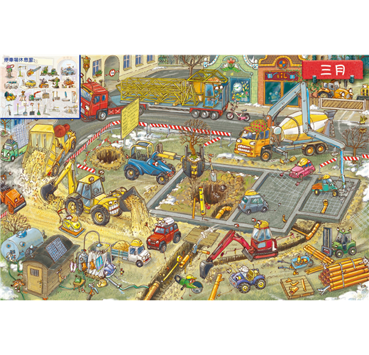 透過找找遊戲,探索工程車的熱血一年!