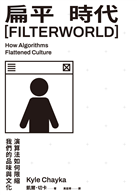 本書叫作《扁平時代》(Filterworld)。我用「扁平時代」這個詞,來形容演算法對我們生活所造成的影響。如今,演算法早已無處不在,和我們的人生環環相扣,更重要的是,演算法對我們的文化造成了驚人的衝擊,徹底改變我們接觸和消費文化產品的模式。雖然在政治、教育與人際關係以及其他許多社會層面,演算法都帶來了改變,但本書將會聚焦於文化領域。我們不管是觀賞視覺藝術、聆聽音樂、看電影、閱讀文學作品,還是欣賞舞蹈,都是透過演算法餵給我們的各種內容來接觸到它們的,它將我們的注意力引導到那些最符合數位平臺結...