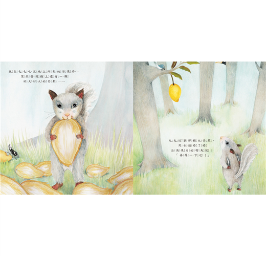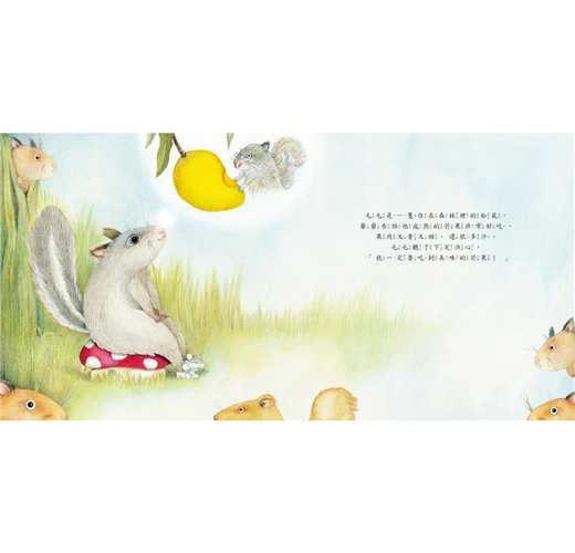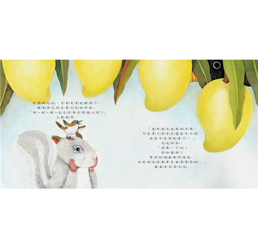 小松鼠毛毛好想吃到爺爺說的美味芒果。