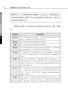 Python語言開發的目標之一是讓程式碼像讀本書那樣容易理解,也因為簡單易記、程式碼容易閱讀的優點,已逐漸成為程式設計的第一入門學習語言。Python語言具備物件導向、直譯、程式碼簡潔、跨平台、自由/開放原始碼等特性,加上豐富強大的套件模組,讓Python的用途更為廣泛。