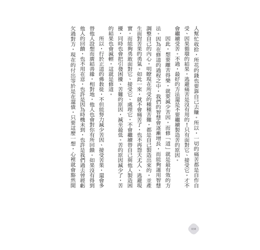 解脫的快樂,並不一定要等到徹底解脫時才能得到,只要朝著這個方向走,每走一步就會有走一步的快樂,而且一點都不是勉強得來的。心念一轉,馬上就是柳暗花明又一村的光明前景!