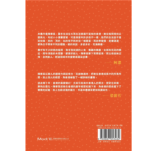 陳華英,童年生活在大眾生活普遍不富裕的香港。她在板間房和公屋長大,年紀小小便要當家,可是像當年許多孩子一樣,他們的生活並不貧乏枯燥,吃的、用的、玩的有平民的另一種豐富。而四季變換,節慶連連,都為日子帶來不同的體驗。總的來說,多姿多彩,充滿樂趣。