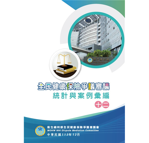 「全民健康保險爭議審議統計與案例彙編(十二)」係選錄111至112年具有代表性及教育性之全民健康保險爭議案例,並就爭議審議資料進行統計分析及說明,編印成爭議審議統計與案例彙編(十二),讓讀者能從中獲知與自身有關健保之權利及義務,也能瞭解2年來全民健康保險爭議趨勢。