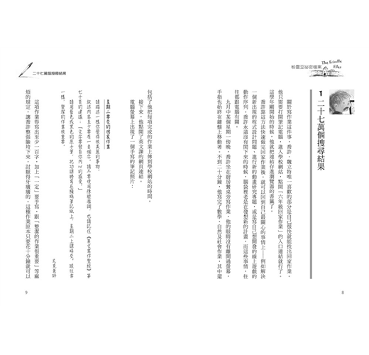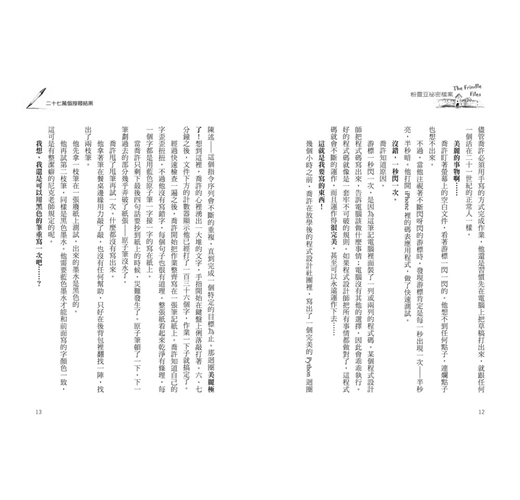 故事引領讀者們一步步去解開謎團,同時也帶領讀者省思文字與書寫的初衷和價值,並找到3C媒介的新力量。