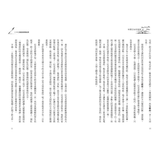 當然作為讀者,你也可以完全不考慮這些,甚至不知道克萊門斯任何作品(但有點可惜),只是單純從《粉靈豆祕密檔案》裡,因為「一個謎團與一個祕密」,得到無比的閱讀樂趣,然後後悔現在才認識他!