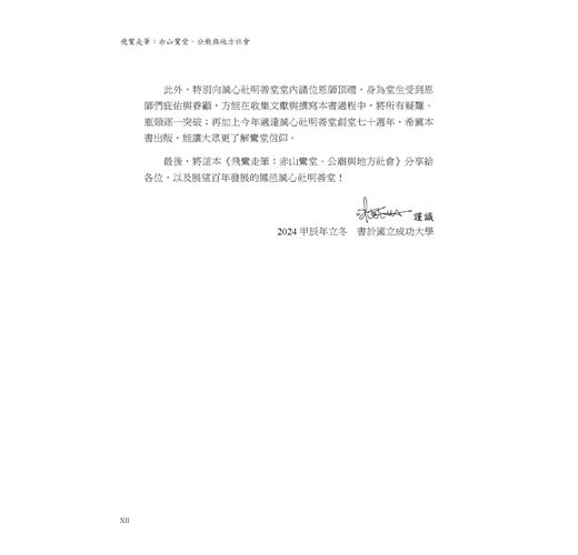 最後,將這本《飛鸞走筆:赤山鸞堂、公廟與地方社會》分享給各位,以及展望百年發展的鳳邑誠心社明善堂!