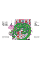 火龍果的外型在水果攤上總是無法忽視的存在,在挑選主題的時候,我立刻選了火龍果。火龍果給我一種神祕的感覺,像是某種神祕熱帶島嶼的產物,背後有著奇異的傳說;我想像著火紅色的小人扛著巨大的火龍果在熱帶島嶼上生活的畫面,於是《火龍狗的夏天》就誕生了。為了營造滿滿的火龍果氛圍,整本書選用了紅綠色系來創作,這也是我最喜歡的配色呢!