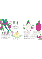 最特別的是,作者陳珮淳將火龍果的名稱、外型、生長習性等特色,巧妙的融進了內容之中,更使用火龍果的色系拼貼出魅力十足的角色們,讓這本書成為火龍果滋味百分之百的故事!
