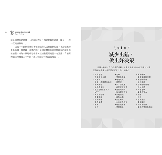 我們稱這些具有能廣泛運用的心智模式為「超級模式」,藉由經常運用它們,你將會擁有超級力量:「超級思維」(Super Thinking),也就是對這個世界有更好的思考能力。你可以善加利用,以便在個人和專業上做出更好的決策。