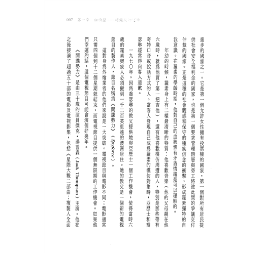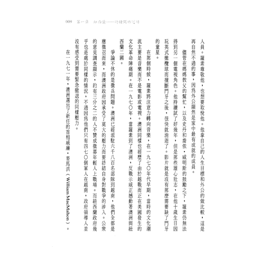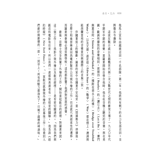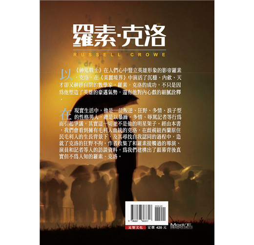 在光鮮亮麗的背後,明星過著怎樣的生活呢?這本羅素.克洛的傳記忠實地描繪了他出生的背景和成名之路。從這本書中,我們可以看到克洛初出道時是以搖滾樂手的姿態站上舞台,並且持續至今。雖然克洛在歌唱事業上並沒有大紅大紫,然而一次偶然的演戲經驗,卻開啟了他藝術生涯的另一面,他所主演的《神鬼戰士》和《美麗境界》可謂其演藝事業的高峰。