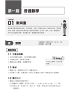 因此,內容部分採全方位設計編寫,兼顧數理科系學生的加深加廣,以及非數理科系學生可以從頭學起且紮穩實力。為此,配合考題趨勢分成第一篇「普通數學」與第二篇「數學教材教法」兩部分,每一單元輔以重點掃描與精選範例,讓各位熟悉各單元考題類型與概念,章末並編入大量考題練習, 讓大家通古貫今,熟能生巧。