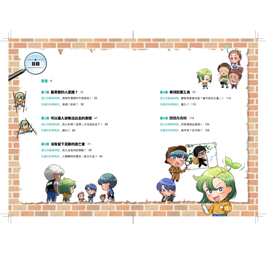 ✦每章節搭配一篇科學報告,全書總共包含五個不同的主題,包含光的折射、物態變化、重力、月相變化等知識點。