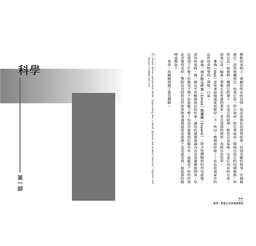 ◎我們選擇專注於什麼,亦即我們選擇感知什麼,在很大程度上呈現了現實,並決定了自己如何看待並體驗這個世界。唯有那些被我注意到的事物,才能塑造我的心智。