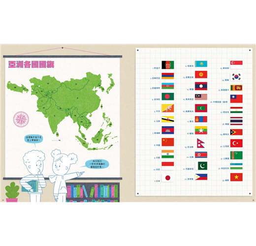 ►全書以大陸地域作為主分類,再以主題進行細節的分類介紹,讓孩子可以了解國旗背後的意涵,進而深入解析各國間的關係。