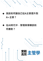 【《實戰高效主管學》是一本難得的好書,教你如何在AI 無法觸及的領域中脫穎而出,成為真正高效的領導者。讀完這本書,你會發現,領導與用人這件事,不僅是一門學問,更是一場值得一生追求的藝術。】