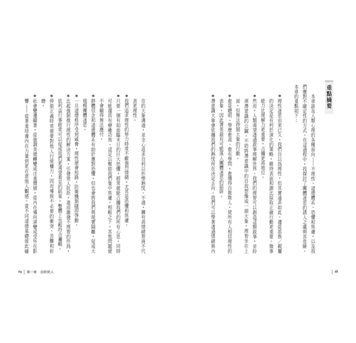 本書談論一種大規模的集體道德思考:團體迷思(groupthink)。書中將探討新科技帶來的衝擊,不僅人際溝通,連我們的思考方式和自我認同、對彼此的寬容態度乃至政治,都深受影響。文中極力為理性、科學和歷史辯護,並敲響一記警鐘,呼籲大家挺身保護自由民主。早在新冠肺炎疫情爆發和封城前,這個世界似乎就已日漸失去理智、陷入焦慮,人們的精神狀況不斷惡化。在這之前,世界普遍處於和平狀態,而且全球人口健康、福祉和經濟都已明顯改善,在此情況下走到如今這種窘境,可說是非比尋常。回顧我至今的人生,全球不平等的現象已大幅減少,農...