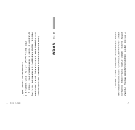 在第三章中,我會探討新媒體和過去通訊科技的創新如何引發重大的社會變遷。許多世代以來,我們的心理沒有太多變化,但科技則日新月異。印刷機問世,人人都能取得《聖經》,導致後來的教會分裂和三十年戰爭(Thirty Years War),奪走中歐地區三分之一人口的生命。現代的新通訊科技創造了龐大機會,卻也帶來許多我們還不知道如何處理的危害。與更多不同的人事物接觸,促使我們產生新的身分認同、行為動機和價值觀。如今,新政治主張不只振聾發聵,更躍升為主導力量。