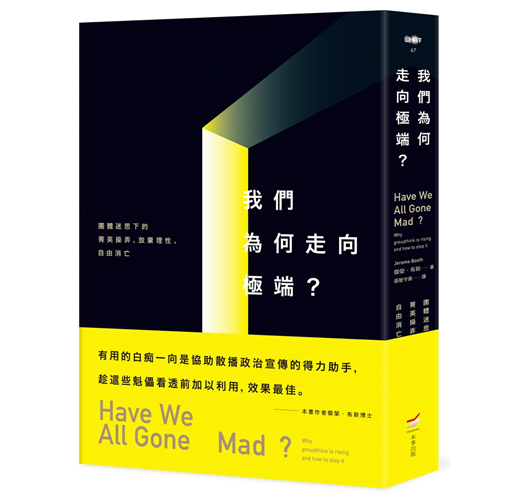 在這樣的完美風暴中,自由民主無疑正受到威脅。本書作者布斯博士(Dr. Jerome Booth)從政治、經濟、社會、心理、哲學等多元視角,探討為何人們甘願捨棄理性、拒絕包容差異、滋長仇恨?我們是不是都瘋了?作者帶領我們梳理現況,試圖在民主消亡前找出解方,防止自由主義和理性遭受侵害。
