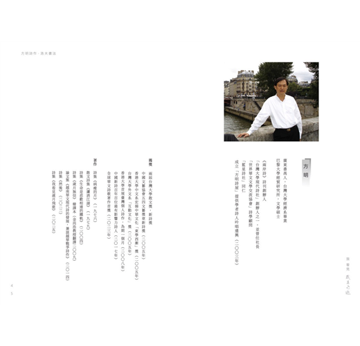 《我看見歲月飛逝—方明詩作・洛夫書法》是方明第七本詩集,全書收錄詩作四十六首。